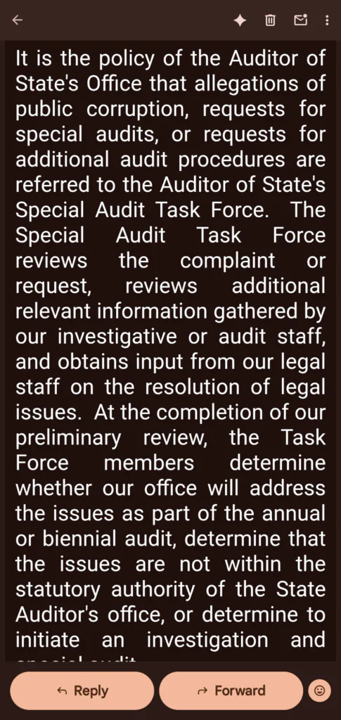 - Referred to the Task Force: Our complaint was immediately sent to the Auditor of State’s Special Audit Task Force for a preliminary review.