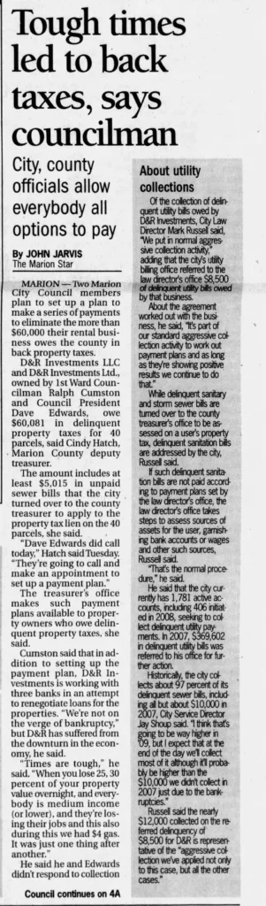 Heralded as a way to “improve efficiency of city services to the public, vendors, and city employees,” the New World software also enabled Marion’s new controllers to better manage (or manipulate) the city’s accounting. Installation of the New World software was completed in July 2009.