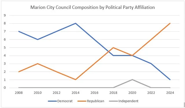 But that balance of power shifted big time in November 2007, when voters in the city of Marion gave all but complete control to members of the Democratic Party.