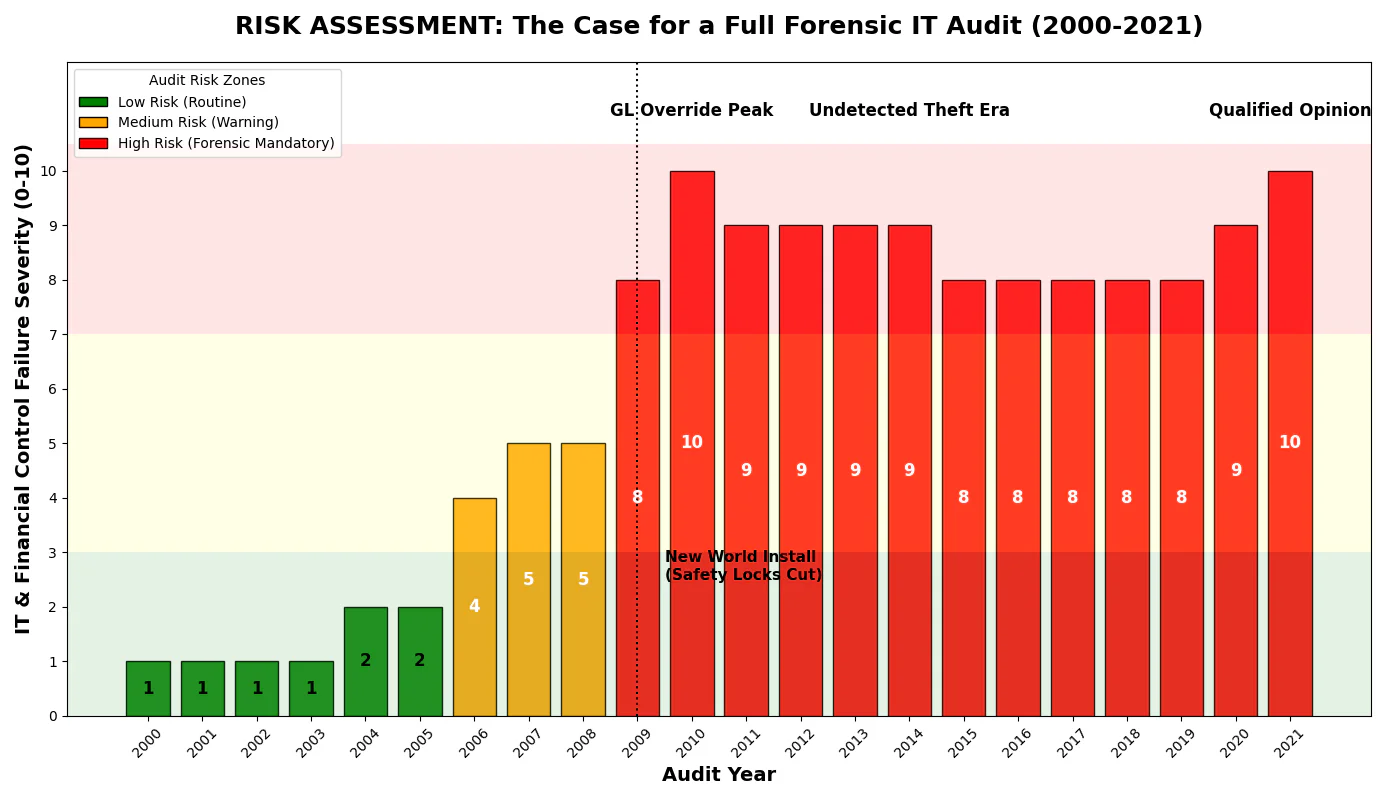 - The Deduction: The Approval Workflow was disabled. The “Audit Trail” that should have flagged 71 fraudulent adjustments was either turned off or never reviewed, and possibly concealed from the Finance Committee.