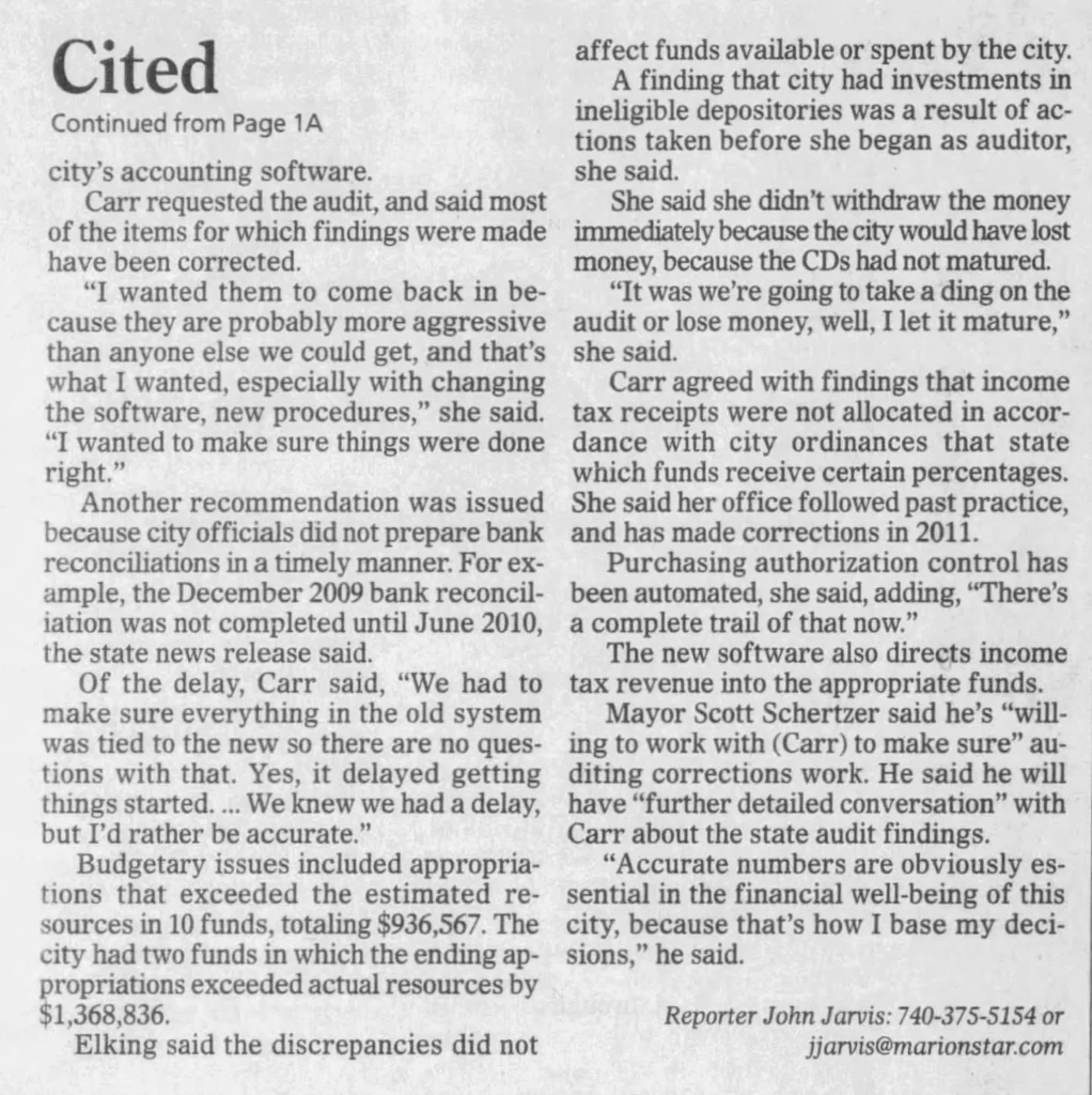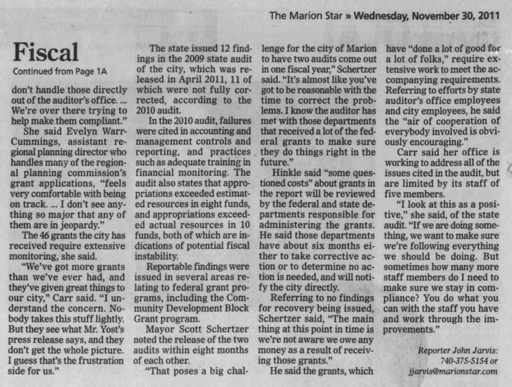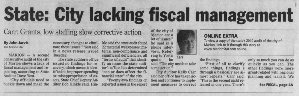 Ohio Auditor of State Responds to the Silent Sabotage of Marion City’s Financial and IT systems: https://news.marionwatch.com/2025/09/28/ohio-auditor-of-state-responds-to-the-silent-sabotage-of-marion-citys-financial-and-it-systems/13/41/marion-news/admin/