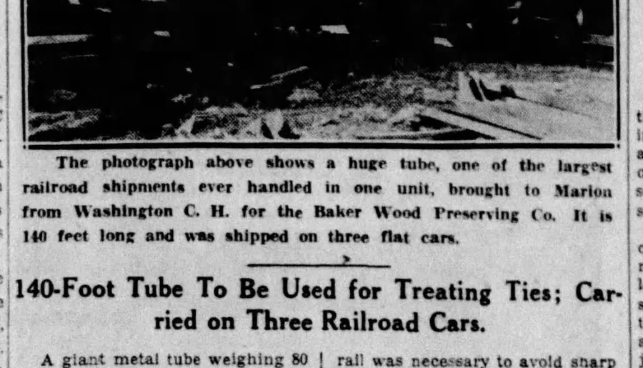 Weighing 80 tons and measuring 140′ in length and 7′ in diameter, the Baker Wood Preserving Company installed two of these mammoth tubes at its factory located at the northwest corner of Kenton Avenue (aka State Route 309) and Holland Road in January 1937. Each tube would be loaded with 800 untreated wooden railroad ties, … Continue reading HERE’S WHAT LIKELY KILLED THE LITTLE SCIOTOReading Mode