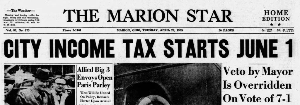 Prior to the 1st of June 1959, if you worked or operated a business in the city of Marion, you didn’t pay any of your earnings to the city in the form of a municipal income tax.